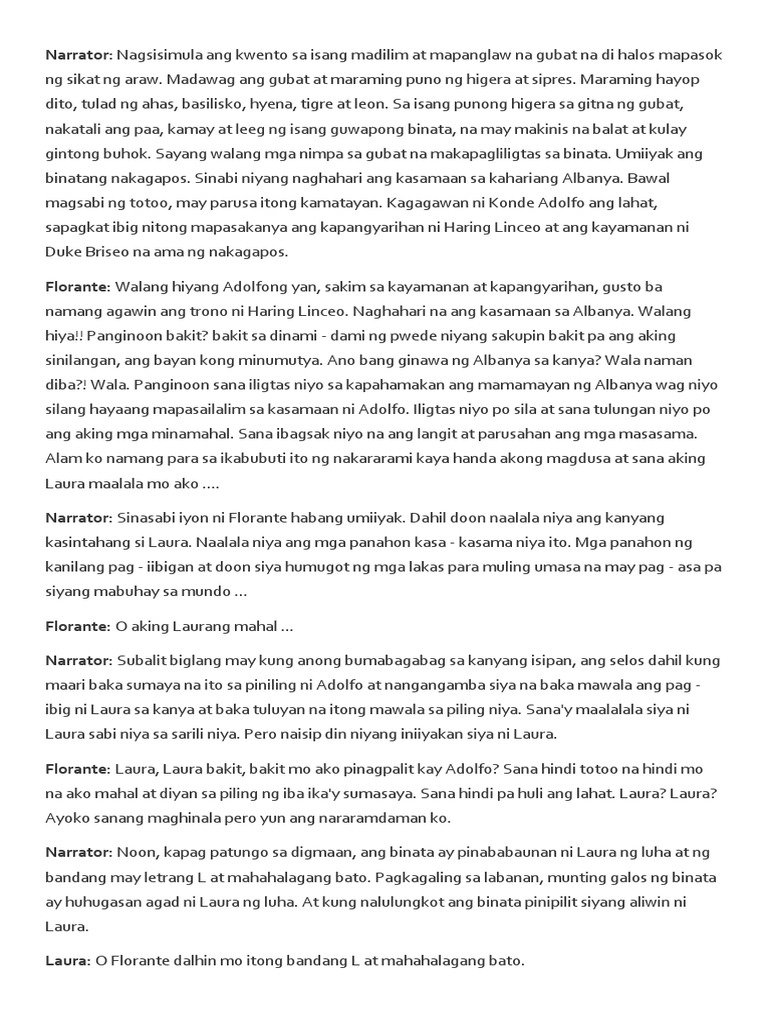 Ano ang mahahalagang pangyayari sa florante at laura. Nailigtas niya si Laura sa kamay ng buhong si Adolfo. It holds the distinction of. Ang mga tauhan na bumubuo sa Kabanata 1 ng El Filibusterismo ay ang mga sumusunod na kinabibilangan nina.