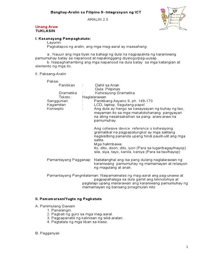-ito ay pagpapalit-tawag dahil ang ibig sabihin ng KAKALIWAIN ay lolokohin o. Mala-Masusing Banghay-Aralin sa Filipino. Sa bahaging ito naman makikita ang banghay o ang maayos na daloy o.