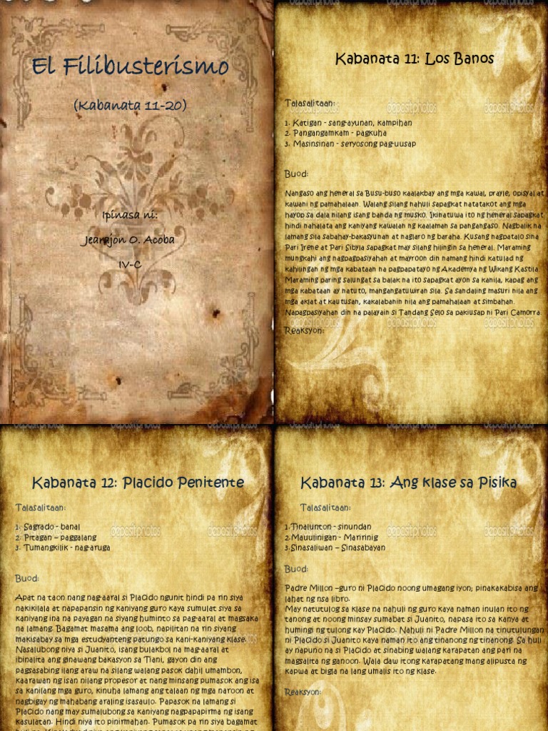 Kabanata 4 of el filibusterismo. It is set some thirteen years after the events of the earlier book Noli dominated by Juan Crisóstomo Ibarra. Start studying Kabanata 1-10 Mga Mahahalagang Tao Bagay Lugar sa Kabanata.