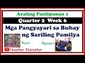 Mga Pangyayari Sa Buhay Ng Sariling Pamilya Araling Panlipunan Grade 1 Quarter 2 Week 6 Youtube