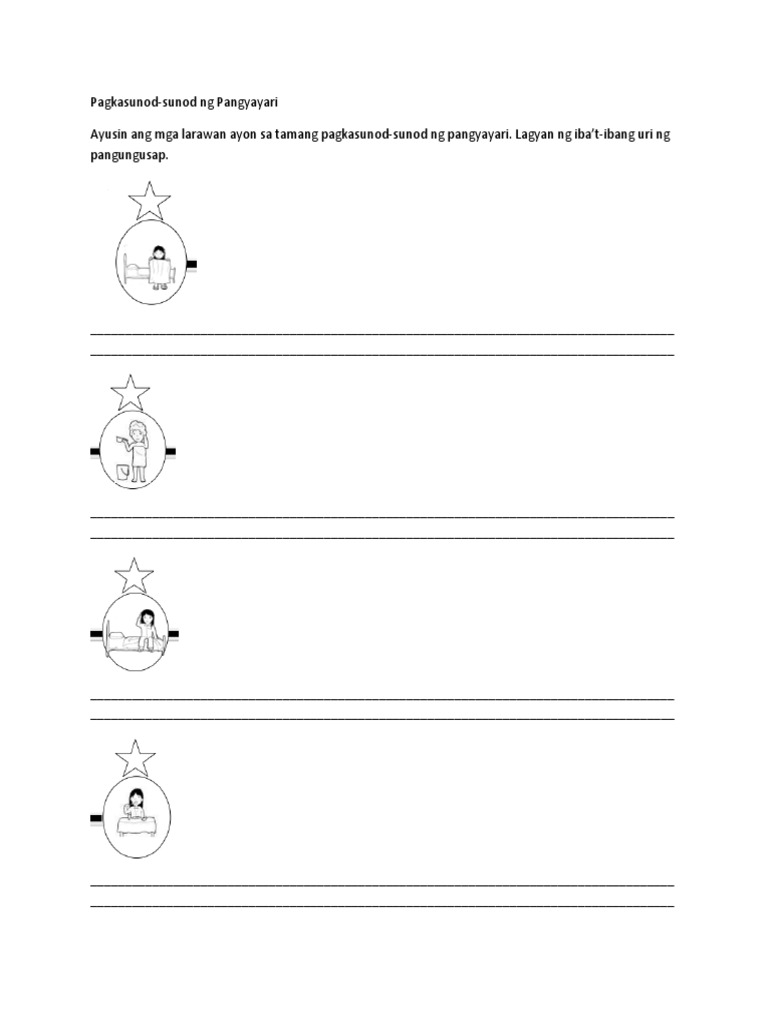 Pagsusunod-sunod ng mga Pangyayari DRAFT. Some of the worksheets for this concept are Pinag ayaw ayaw na gawain sa filipino. Displaying all worksheets related to - Pagkakasunod Sunod Ng Pangyayari Sa Kwento.