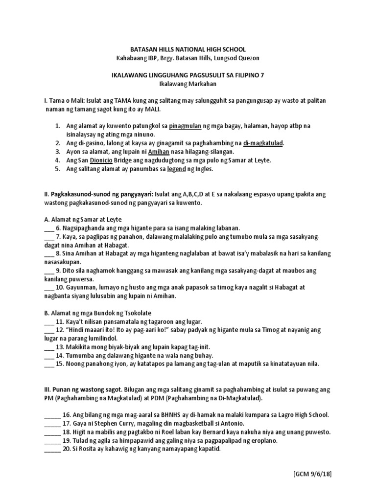 Maibibigay mo ang tamang pagkakasunod-sunod ng. 20 minutes ago by. GONZALES HIGH SCHOOL San Rafael Bulacan Lagumang Pagsusulit sa Filipino sa Piling Larangan Teknikal-Bokasyunal 2 nd Sem2016-2017 PANGALAN.